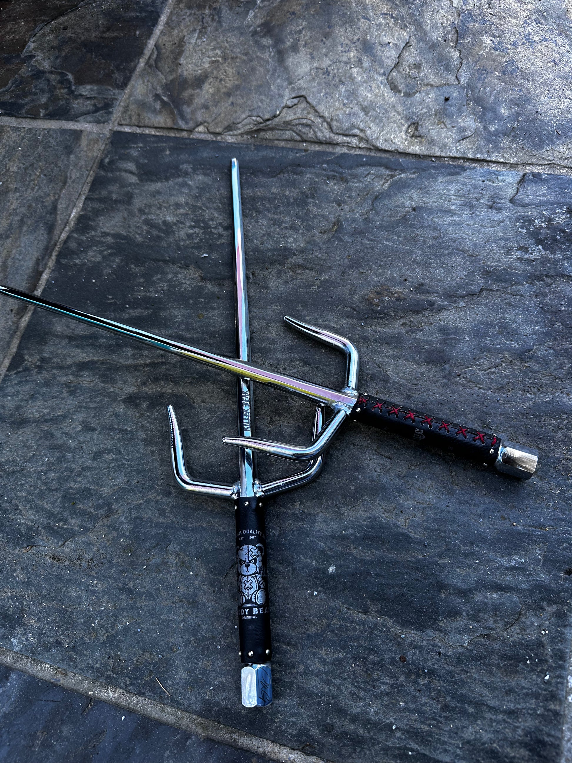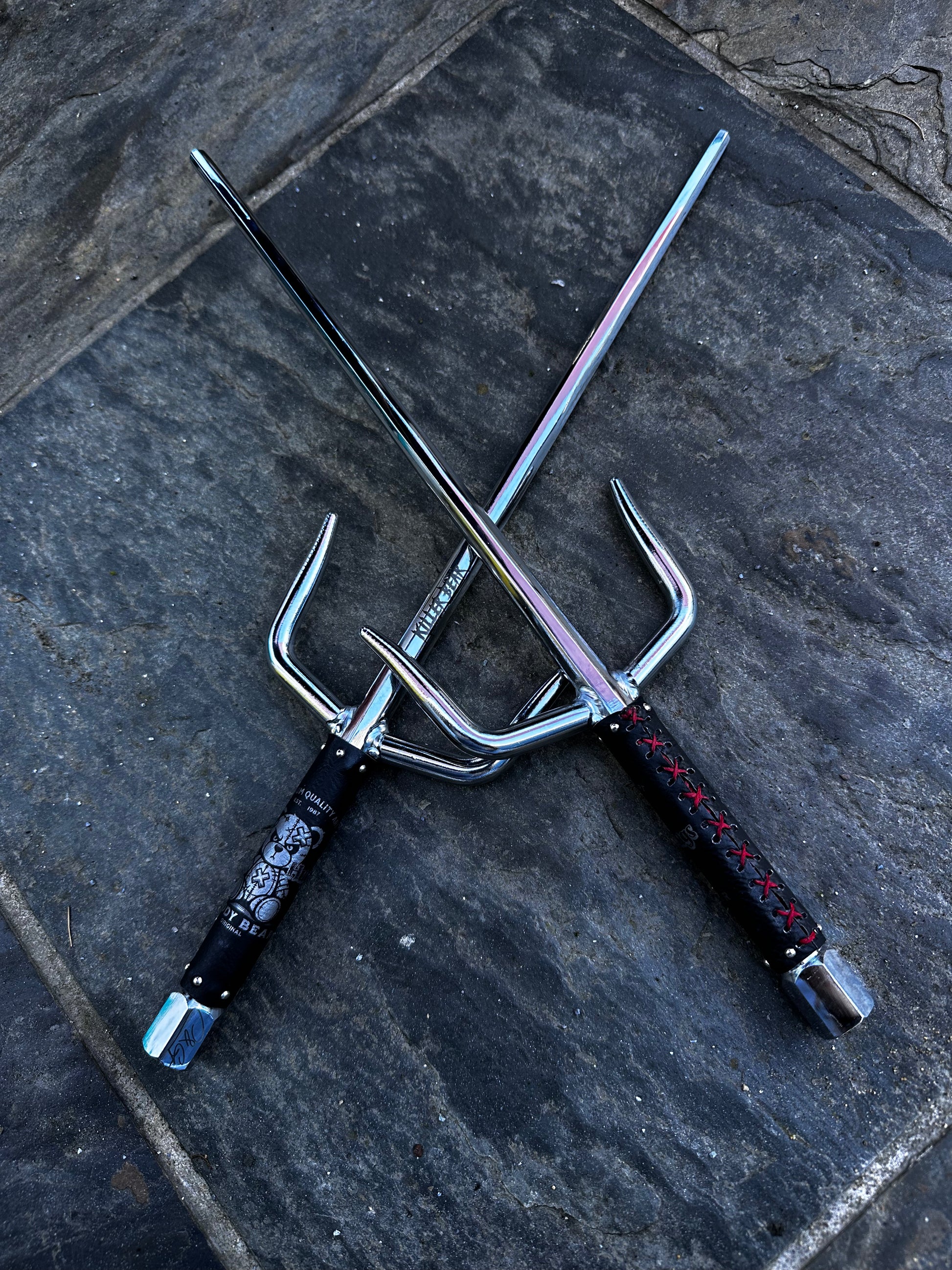Added to our collection our sai daggers “killer bear” in PU leather and chrome steel. Some studs some red thread… all you need to be cool and awesome with them!!!