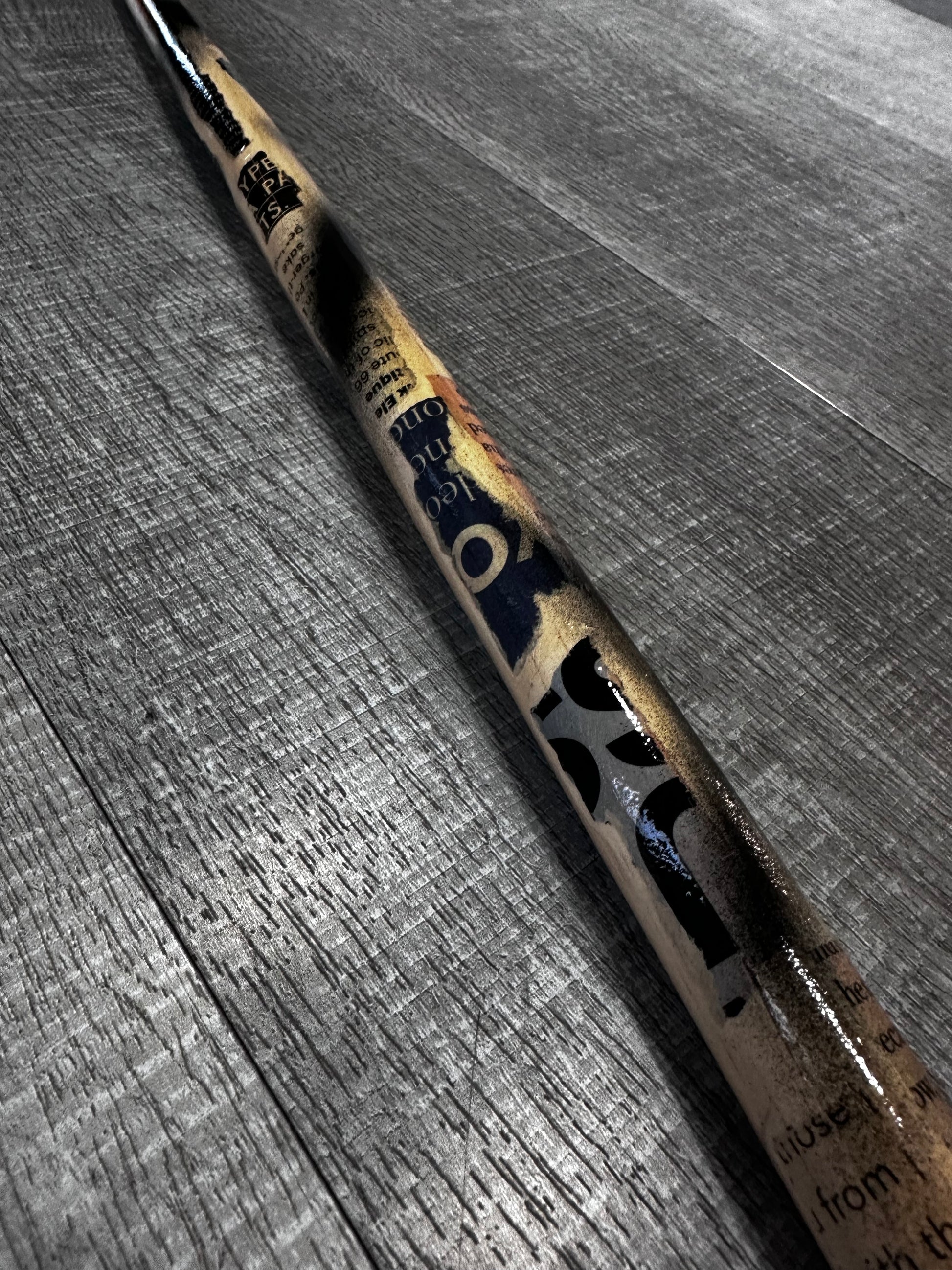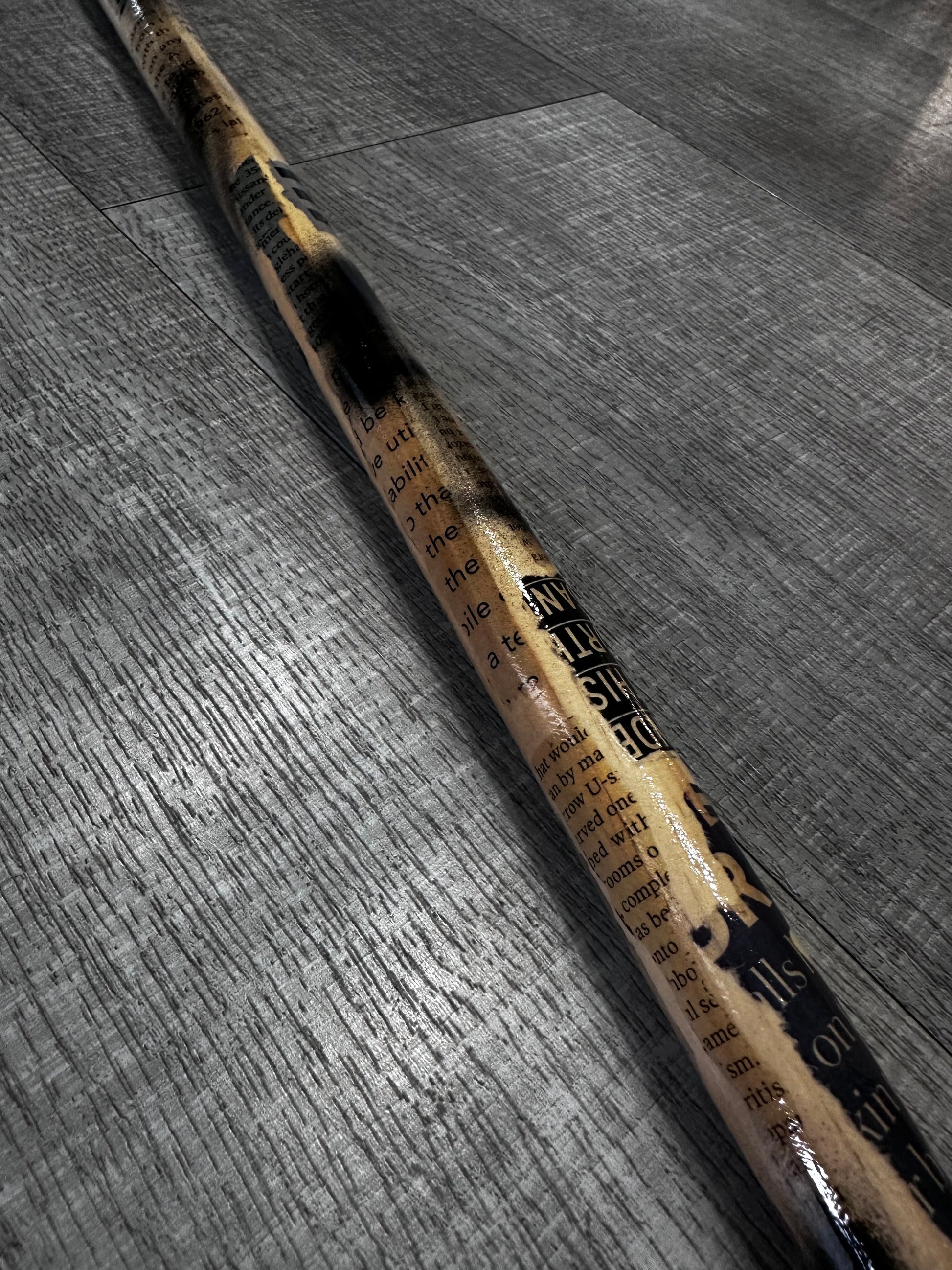 This traditional bo staff is handcrafted from solid beech wood and measures 44 inches—the standard length preferred by practitioners. Each piece features distinctive newspaper cut and graffiti-inspired design elements that blend martial arts heritage with contemporary aesthetics. Built to withstand rigorous training, this staff delivers reliable performance for kata practice and partner drills. Available as shown, with special order reproduction options upon request. An excellent choice for serious practitioners seeking quality craftsmanship with artistic character.