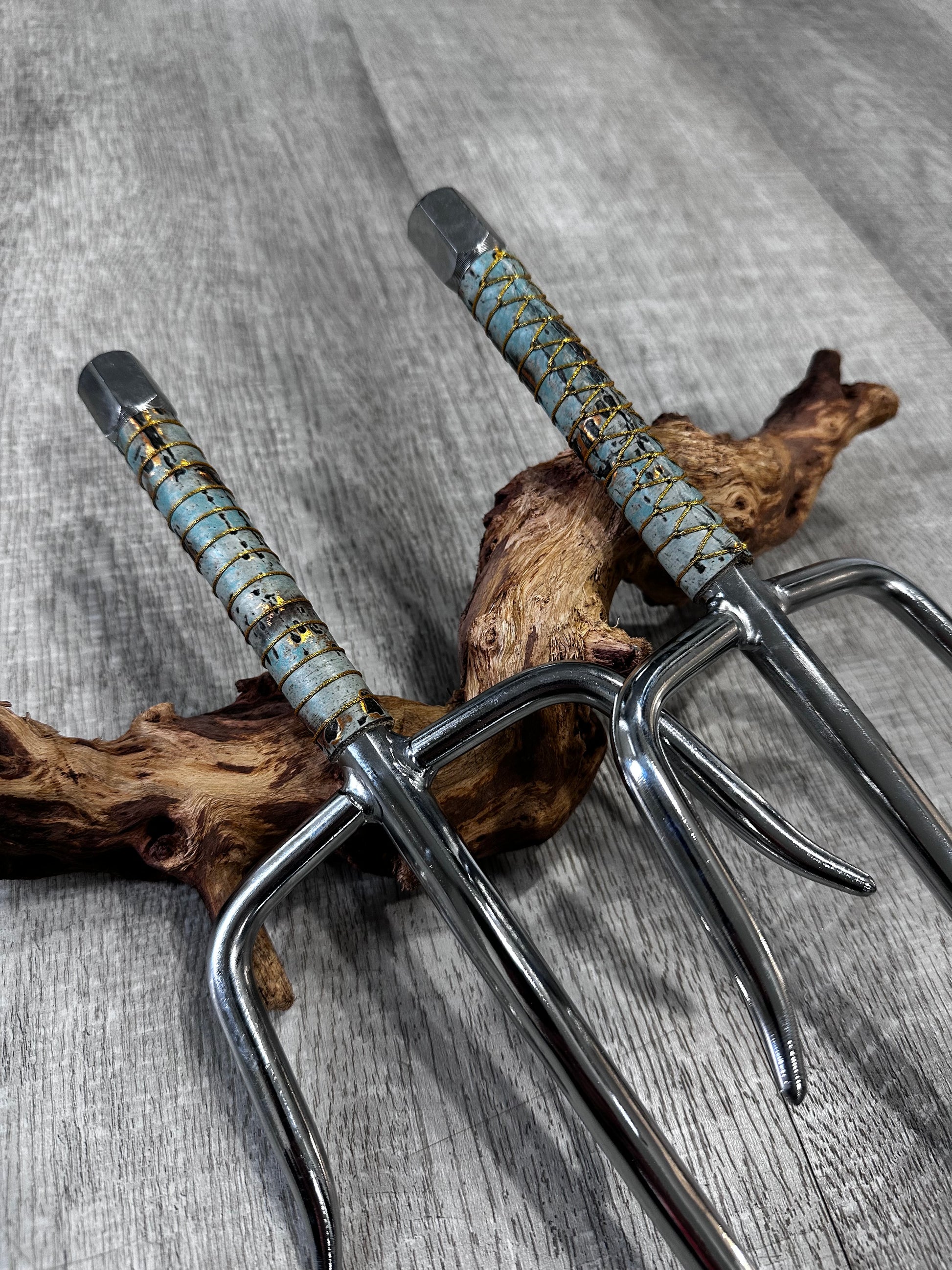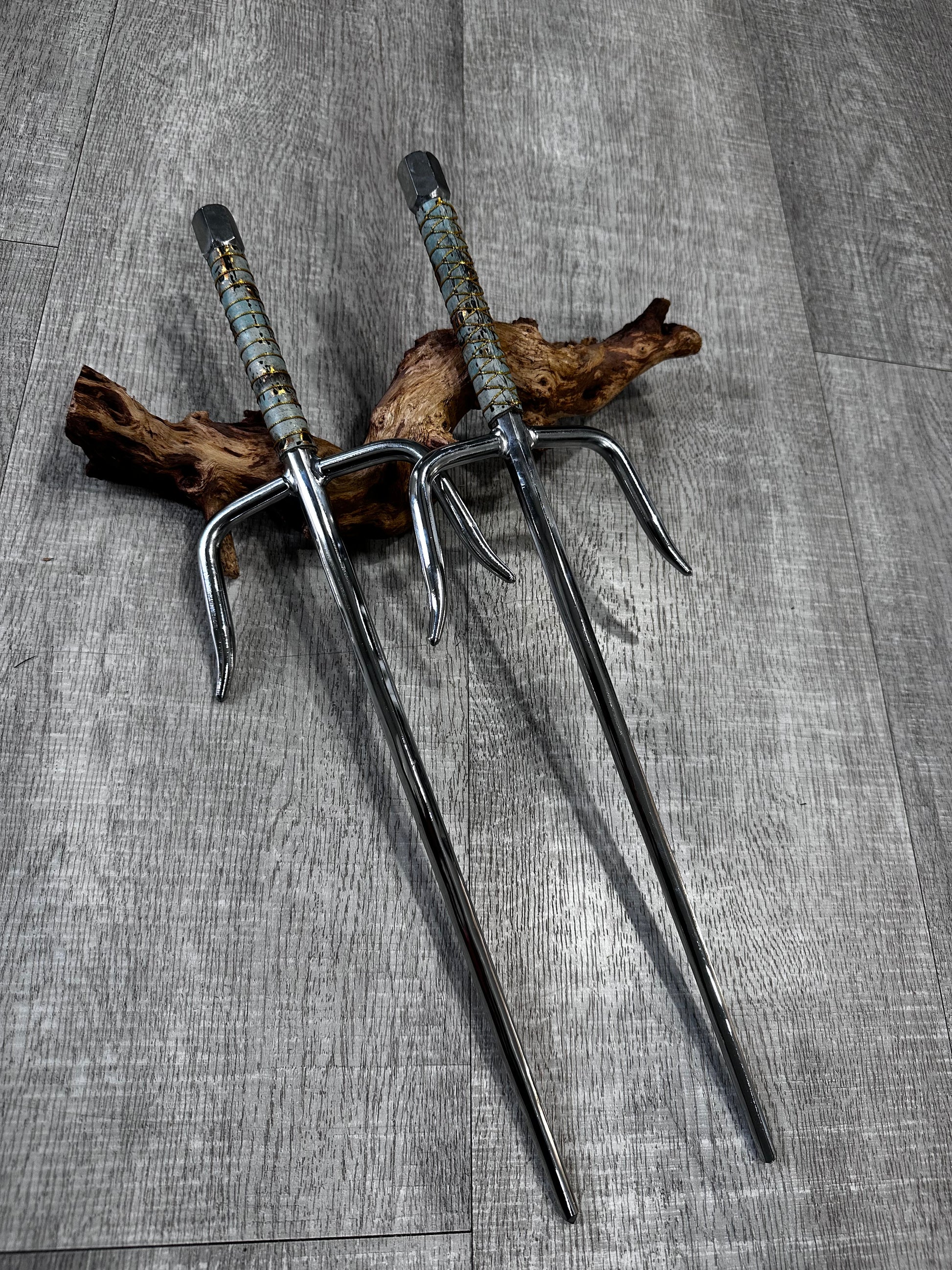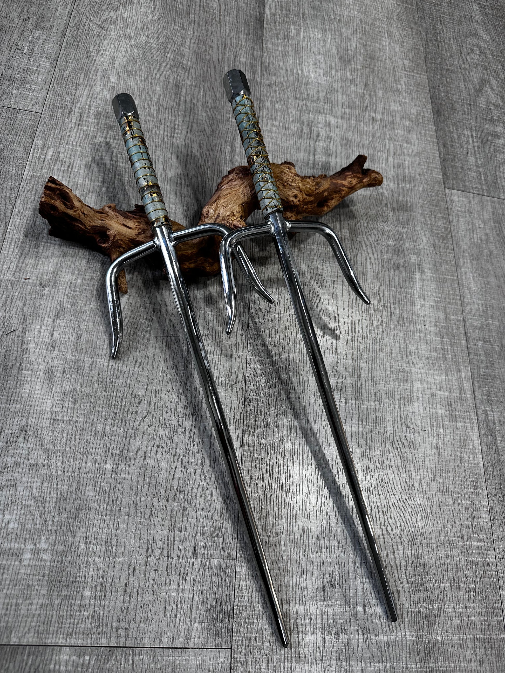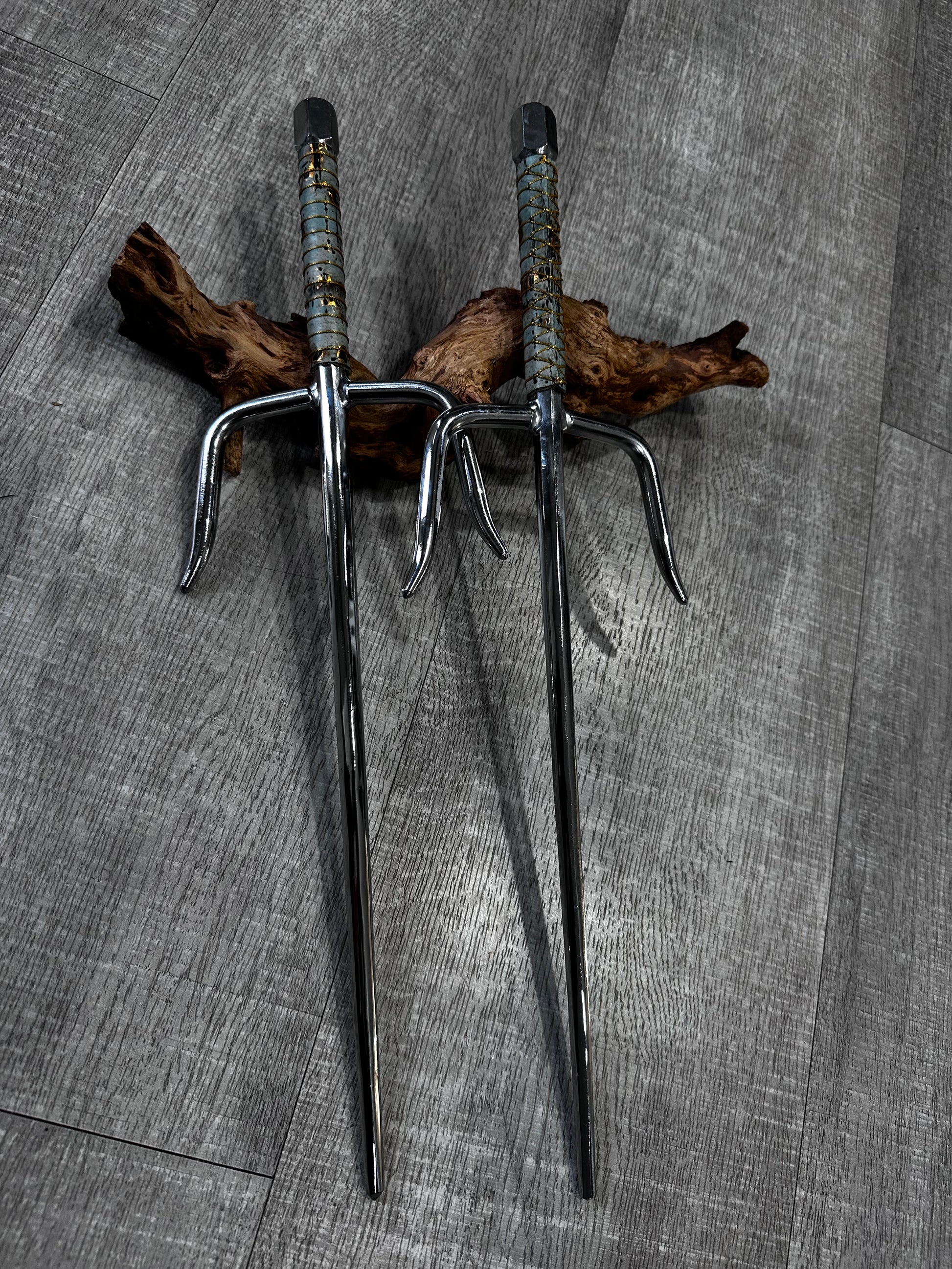To measure the sai, take a measuring tape and measure from the middle finger tip to the elbow with your hand extended and from the inside of your palm side. The sai must be at least one inch longer and no more than 2 inches than that measure.