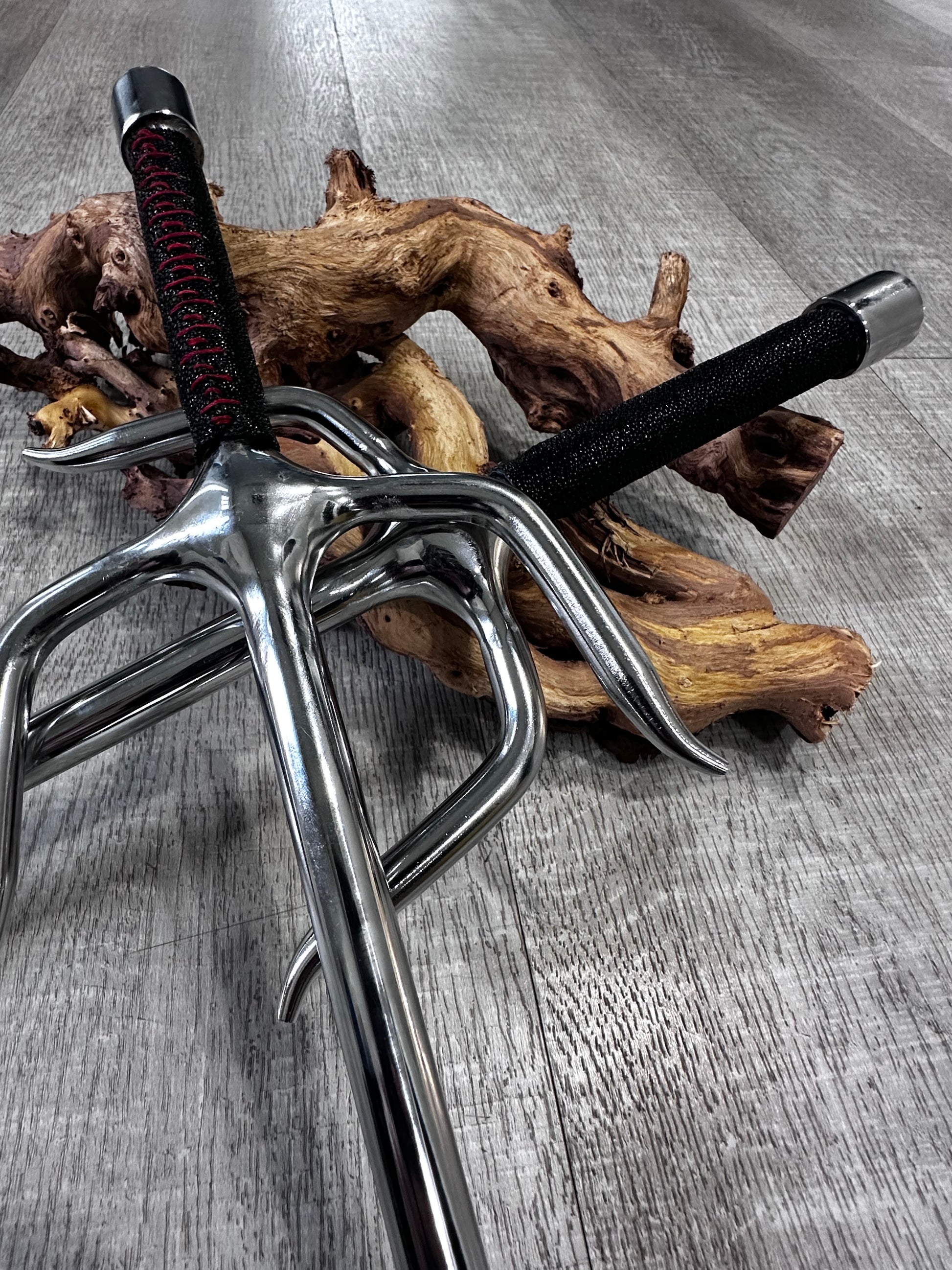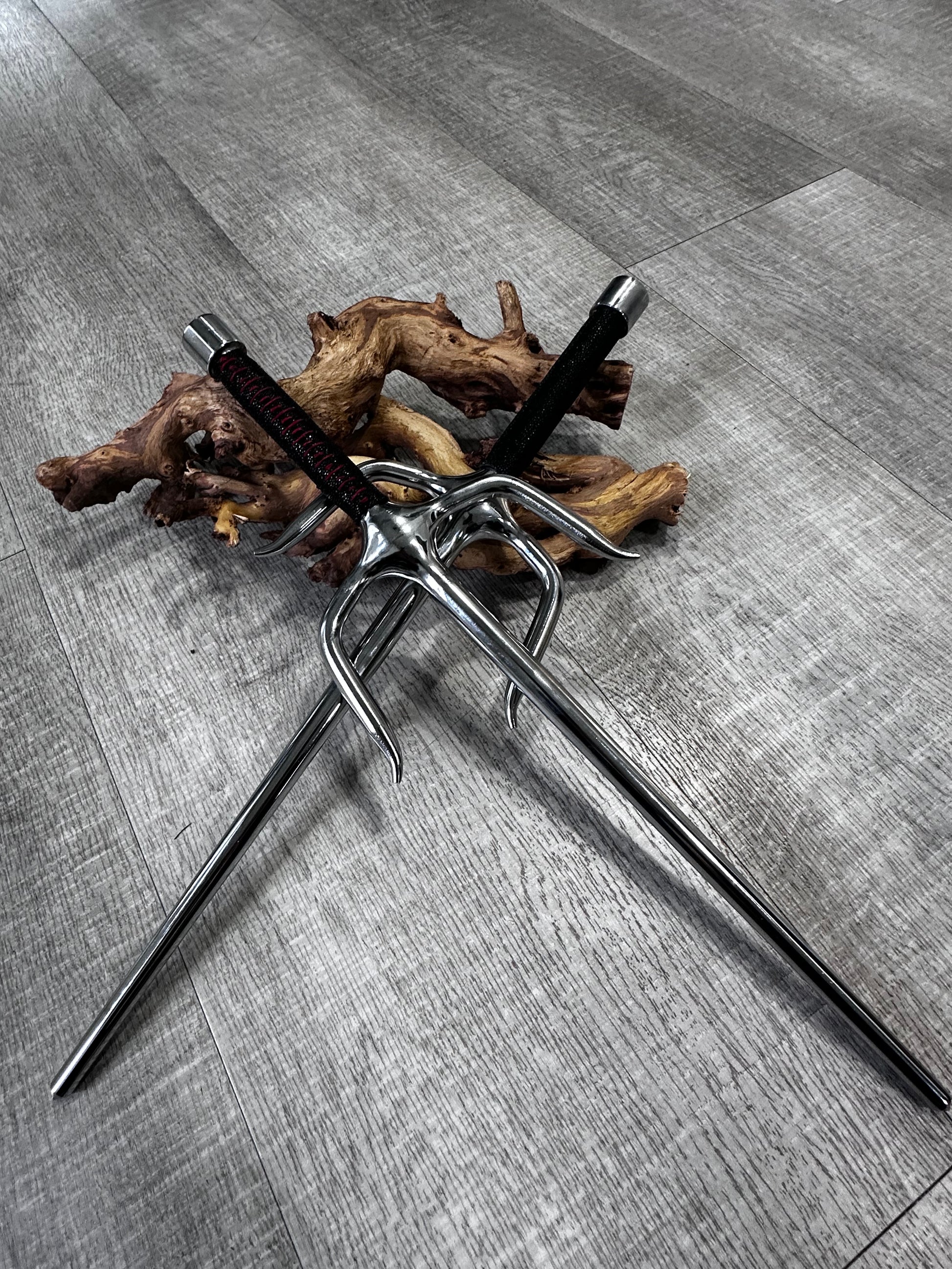 Crafted from authentic exotic stingray leather, this Sai showcases the material's distinctive smooth texture and natural beauty. Stingray leather is prized by discerning craftspeople for its durability and unique aesthetic qualities. The deep black finish enhances the leather's inherent character while providing a sophisticated appearance. Each piece reflects the premium quality of this rare material, making it a standout addition to any collection.