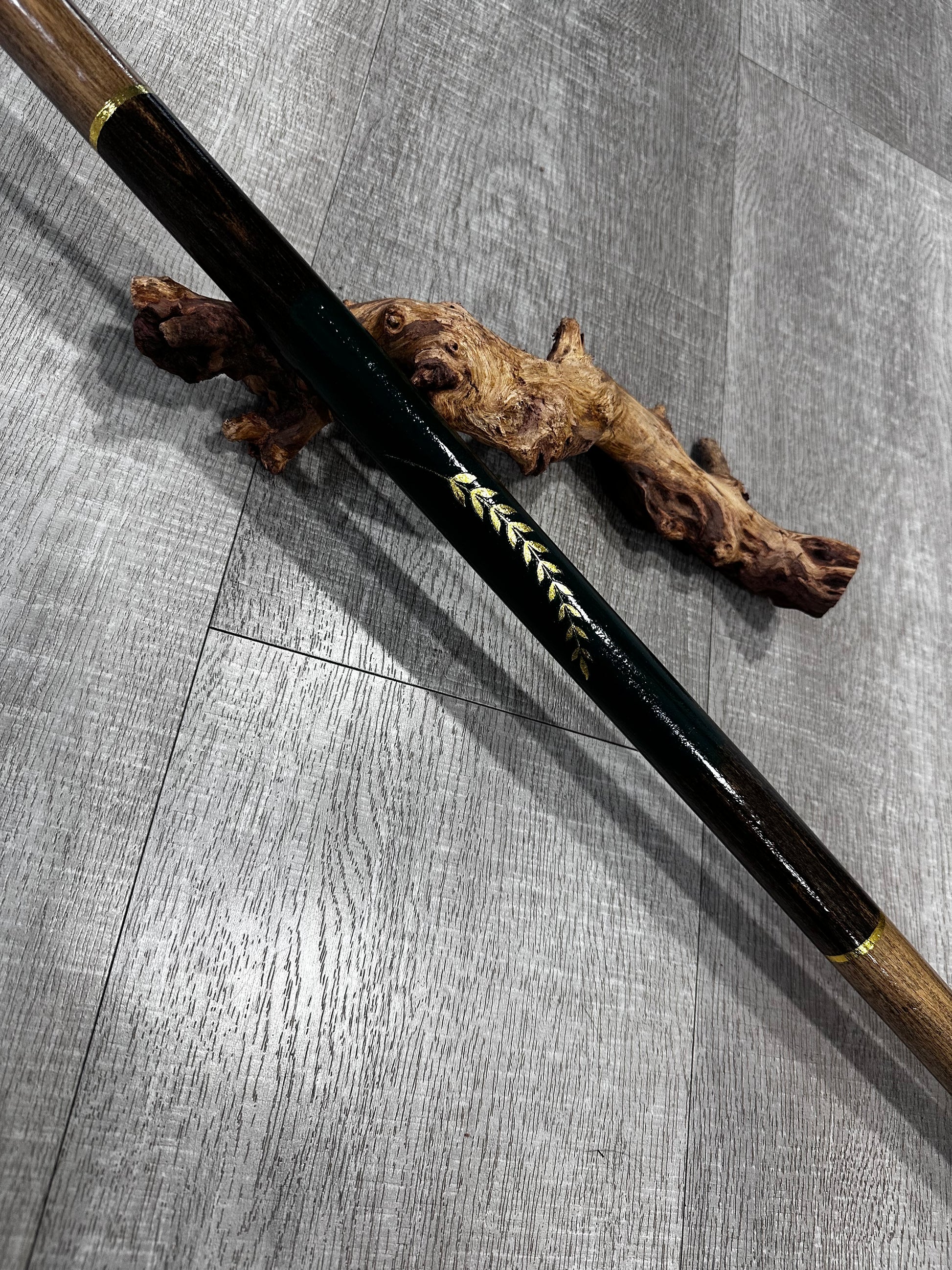 The Victor Bo Staff represents a masterwork of traditional craftsmanship. This 61-inch staff features a substantial 1-inch diameter shaft, providing excellent balance and control for practitioners of all levels. Hand-carved end details showcase meticulous artisanal work, while delicate gold leaf gilding adds refined elegance to the weapon. Constructed with respect for classical bo staff design, this piece serves both functional training and aesthetic appreciation. Ideal for martial artists seeking authentic quality and visual distinction.